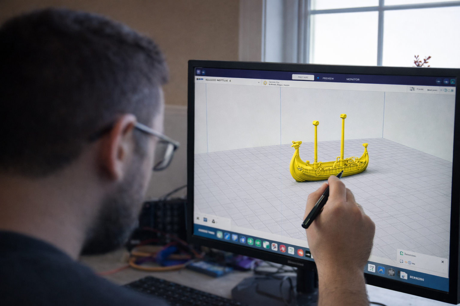 Observez la magie opérer! Nos imprimantes 3D transforment les modèles virtuels en figurines tangibles. Chaque drakkar est imprimé avec soin, garantissant une qualité et une précision exceptionnelles. Voyez comment nos créations prennent forme, couche par couche.